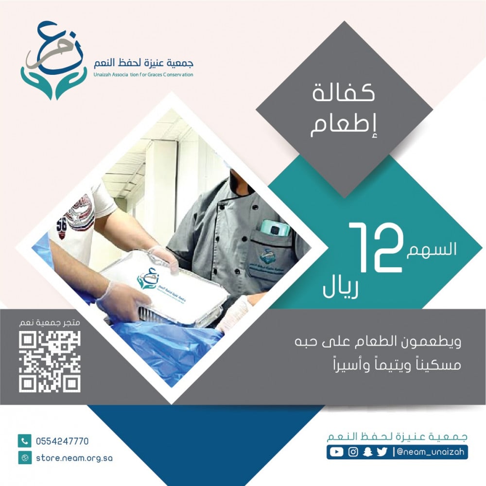 وتبرعك لبرنامج كفالة إطعام يساهم في شراء وجبة يومية وإطعام أسرة مستحقة ومحتاجة بمبلغ 12 ريال فقط